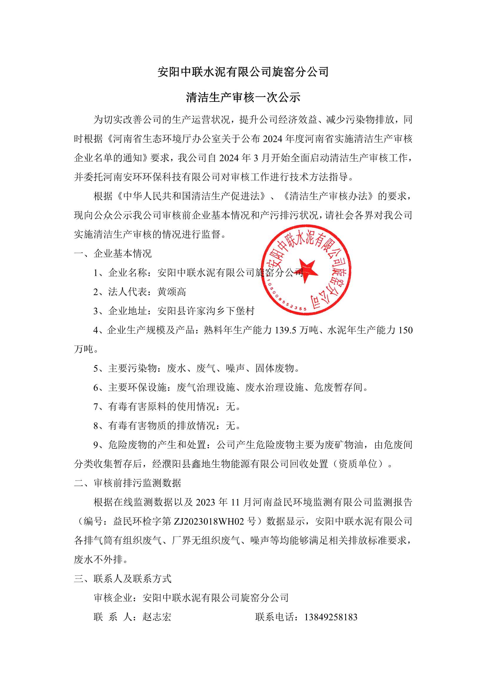 安陽中聯(lián)水泥有限公司超低排放提標(biāo)改造項(xiàng)目驗(yàn)收公眾參與公示